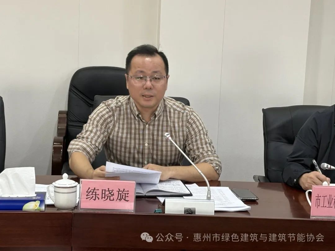 惠州市绿建协会会长梁志华发言表示协会将配合市住建局进行信息采集工作,争取建立一套可涵盖惠州市绿色建材产品的信息库。同时,他坦诚提出绿色建材推广应用过程中遇到的困难与挑战,他希望能多渠道进行宣传教育,提高大家对绿色建材、绿色建材产品认证的了解和认识,加速绿色建材产品的推广应用,推动我市建材行业绿色低碳发展。会议期间,调研组分享了广东绿色建材采信应用数据库系统汇报平台的应用经验,详细介绍了企业通过该平台认证为绿色建材产品申请、审核、公示等各个环节的操作流程,以及平台在促进绿色建材推广应用方面的积极作用。与会人员就绿色建材发展的现状、未来推广的建议以及绿色建材产品认证进行热烈交流。