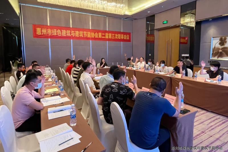 2022年7月29日,惠州市绿色建筑与建筑节能协会第二届第三次理事会议在富力万丽酒店顺利召开。会议由梁志华会长主持,第二届理事会、监事会成员和秘书处等人员参加了会议。
