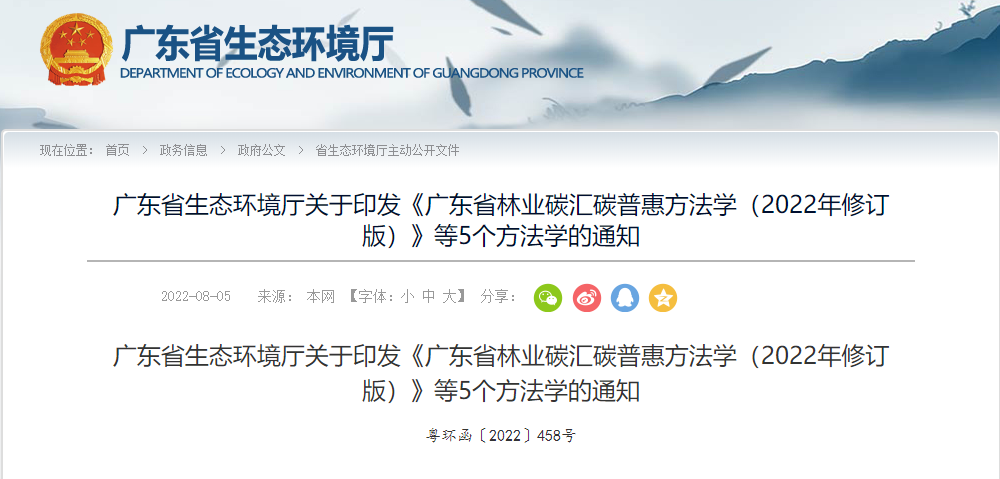 根据《广东省碳普惠交易管理办法》规定,结合我省碳普惠机制工作开展情况,现将修订后的《广东省林业碳汇碳普惠方法学》等5个方法学印发你们,请参照做好相关碳普惠核证减排项目管理与组织实施工作。