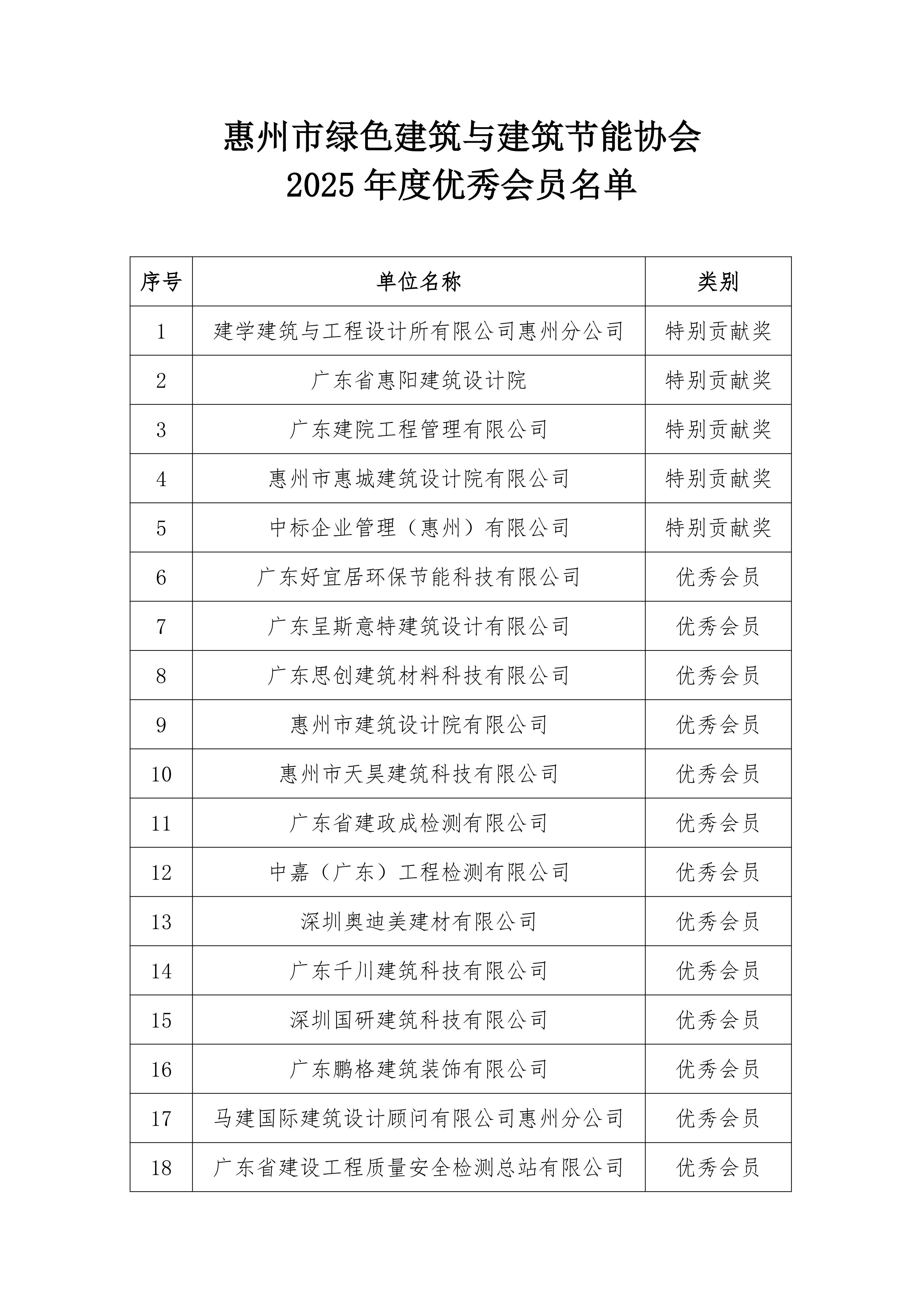 关于2025年度惠州市绿色建筑与建筑节能协会优秀会员单位的公示
